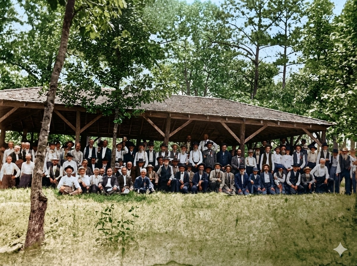 ![]() (AI enhanced photo of a group of Confederate Veterans gathered under the Tabernacle - around 1900)